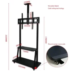 Le Support Mobile Réglable pour Écran PS est la solution idéale pour déplacer facilement vos écrans interactifs ou moniteurs professionnels dans vos espaces de travail ou d’enseignement.
